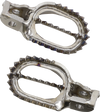 Made from aerospace-grade titanium Grade 5 Ti-6AL-4V with chamber-controlled welding, 57 mm cleated platform provides ample surface area and support for the most aggressive riding, Super lightweight coming in under 300 grams per set, Inner cleated webbing design provides added traction surface and strength to the foot pegs, Beveled front and rear edge, prevents pegs from hanging up in deep ruts