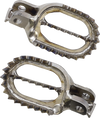 Made from aerospace-grade titanium Grade 5 Ti-6AL-4V with chamber-controlled welding, 57 mm cleated platform provides ample surface area and support for the most aggressive riding, Super lightweight coming in under 300 grams per set, Inner cleated webbing design provides added traction surface and strength to the foot pegs, Beveled front and rear edge, prevents pegs from hanging up in deep ruts