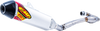 RCT (Resonance Chamber Technology) features a patented core shape that lowers decibels while maintaining maximum power output, Internal ducts in the chambers of the RCT system increase internal volume for improved exhaust flow, resulting in power gains throughout the entire range of power, FMF's Factory Forward Engineering centralizes mass and is less prone to crash damage, Innovative rear end cap features simple installation of tuning tip inserts or spark arrestor with the removal of four screws, Meets AMA and FIM sound requirements, QuietCore 94db insert included, Spark arrestor included in muffler, Made in U.S.A.