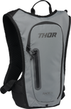 1.5 liter BPA-free bladder with an easy clean, big bore top,  Magnetic bite valve holder, Thermal lined bladder compartment helps keep fluids cool, Sternum strap and buckle keep gear secured,  Pack harness is angled away from the underarms giving total freedom of movement, Harness made with air mesh for ventilation,  Neoprene hydration tube sleeve helps keep fluid cool,  External zippered pocket, Reverse face YKK? water resistant zip on front,  Micro fleece lined glasses/media pocket,  THOR reflective logo,  Durable 500D polyester main body material
