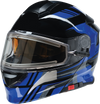 Injection molded polycarbonate shell, Includes dual pane anti-fog electric shield and standard shield, Micrometric helmet strap, Amber color drop-down sun visor activated using lever on the side of the helmet, Closable chin and top vents and rear exhaust vent allow increased air flow, Fully removable polyester moisture wicking liner and cheek pads, Removable breath box and chin curtain included