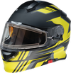 Injection molded polycarbonate shell, Includes dual pane anti-fog electric shield and standard shield, Micrometric helmet strap, Amber color drop-down sun visor activated using lever on the side of the helmet, Closable chin and top vents and rear exhaust vent allow increased air flow, Fully removable polyester moisture wicking liner and cheek pads, Removable breath box and chin curtain included