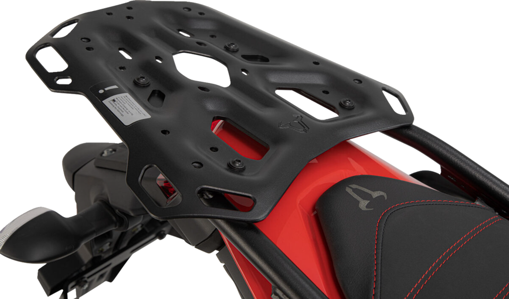 Perfect tail bag and luggage rack solution, The model-specific ADVENTURE-RACK luggage rack with expansion offers the optimal contact surface for the PRO Rackpack tail bag, Lots of space with a modern design, Lashing hooks attach the PRO Rackpack to the rack in a few easy steps and the rack is attached to bike-specific mounting points on the motorcycle, Kit includes:, One PRO Rackpack Tail Bag, Anti-slip universal fit tail bag with large zippered mesh compartment, two outer zippered pockets, and volume expansion zippers on the outer sides, Featuring robust lashing eyes for secure fastening, durable UV-resistant 1680D Ballistic Nylon, splashproof inner lining, reflective details, and a carrying handle, One ADVENTURE-RACK, Robust rack for long tours and off-road rides featuring multiple functional bores for TRAX cases, Easy rigging of luggage on numerous, large lashing eyes, threading of 25 mm fasteners possible, Especially large contact surface (Width: 32.9 cm at the front, 22.5 cm at the back, Length: 30.3 cm), Easy installation on original attachment points with bike-specific attachment elements, Effective corrosion protection from black powder coating, Made of light but sturdy 4 mm thick aluminum alloy, One Luggage Rack Extension for ADVENTURE-RACK - 45 x 30 cm - Black, Large contact surface (30 x 45 cm) for easy transport of large tail bags and other bulky luggage items, Easy rigging of luggage on numerous, large lashing eyes, threading of 25 mm fasteners possible, Quick attachment of the Rackpack tail bag and easy mounting with the expansion screwed onto the rack, Made of high quality lightweight aluminum with black powder coating to protect from corrosion and wear