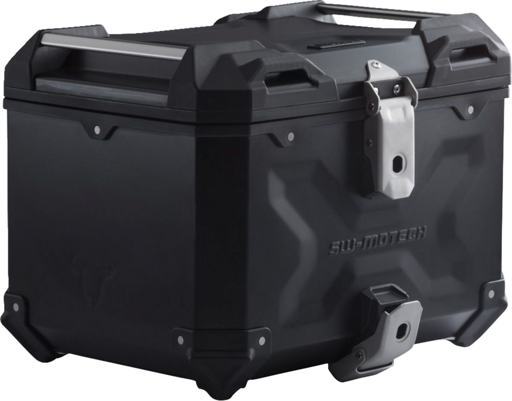 This complete solution contains everything required for installing a top case: TRAX ADV top case, bike-specific rack, adapter plate, and TRAX lock set, Provides stability, impermeability towards dust and water, and easy handling, The bike-specific rack and the adapter plate secure the top case: it is simply suspended and locked with the help of the lockable latch, Kit includes:, One TRAX ADV Top Case - 38 Liter, Premium top case made from 1.5 mm-thick aluminum, Hinged lid with lid limiter, stainless steel latch, sturdy carrying handles, and integrated mounting points, Protects against water, dust, and theft, High stability and easy to clean functional embossed sheet metal surface with additional protection from corners made of glassfiber-reinforced polyamide, One STREET-RACK, Easy installation on original attachment points with bike-specific attachment elements, Perfect fit due to bike-specific attachments and high-precision CNC production processes, Compact shape complements the lines of sporty motorcycles and small street bikes, Simple assembly at the original mounting points, Effective corrosion protection from black powder coating, Made of lightweight yet robust 5 mm thick aluminum alloy, One Adapter Plate For STREET-RACK - TRAX Adventure/ION/EVO, Compatible with TRAX ADV, TRAX ION, and TRAX EVO top cases by SW-MOTECH, Can be securely locked to the STREET-RACK without the use of tools, The rotating cam latch on the adapter plate features a safety mechanism that guarantees a secure connection for your luggage, Large surface area and hole pattern allow easy attachment of soft luggage, Made from rugged, glass fiber reinforced synthetic material, Trax Lock Set - 2 Matching Locks with Keys, Matching locks